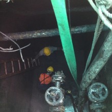 5.當作業人員需要下池作業時,需選擇一塊污泥較淺區域下池,搭設好爬梯,穿戴好防水作業服及安全帶,污泥過腰深時,禁止下池作業。