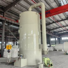 廢氣凈化噴淋塔的結構:噴淋塔內填料層作為氣液兩相間構件的傳質設備。填料塔底部裝有填料支承板,填料以亂堆方式放置在支承板上。填料的上方安裝填料壓板,以防被上升氣流吹動。噴淋塔噴淋液從塔**經液體分布器噴淋到填料上,并沿填料表面流下。氣體從塔底送入,經氣體分布裝置分布后,與液體呈逆流連續通過填料層的空隙,在填料表面上,氣液兩相密切進行傳質。當液體沿填料層向動時,有時會出現壁流現象,壁流效應造成氣液兩相在填料層中分布不均,從而使傳質效率下降。