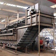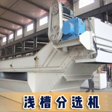 原煤進入淺槽后和重介懸浮液混合,按密度分層精煤在溢流堰排出,矸石在槽底刮出,完成分選。